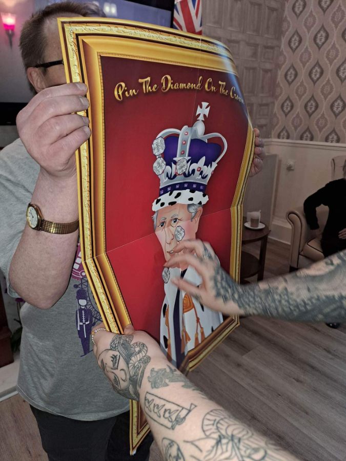 On a delightful Bank Holiday Monday, the residents of our community indulged in a lively and entertaining game that brought smiles and laughter all around. “Stick the Diamond on the Crown” became the highlight of the day, with participants eagerly vying for a chance to place the sparkling jewel atop the regal crown. Blindfolded and guided by the laughter of their peers, each contender took their turn, adding an element of suspense and excitement. Cheers erupted when the diamond found its rightful place, accompanied by applause and jovial banter. This simple yet enjoyable game proved that sometimes the most uncomplicated activities can bring immense happiness and create cherished memories.