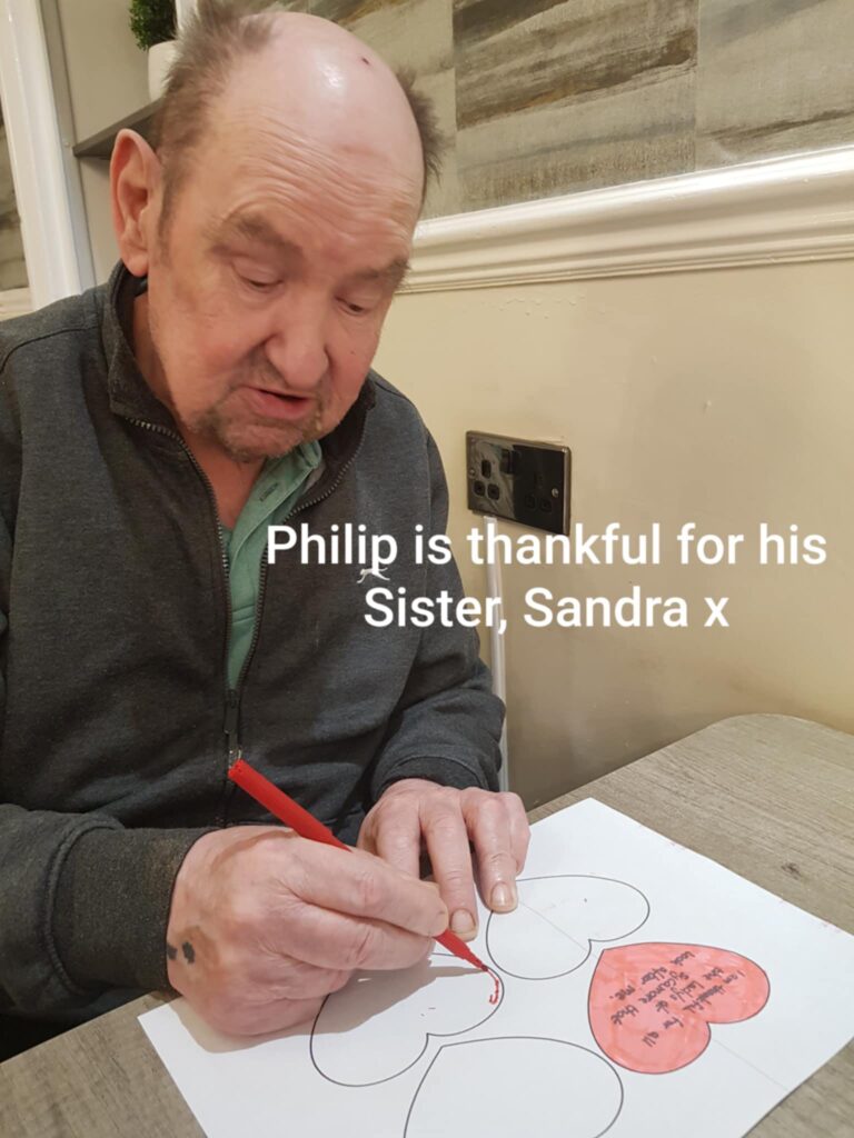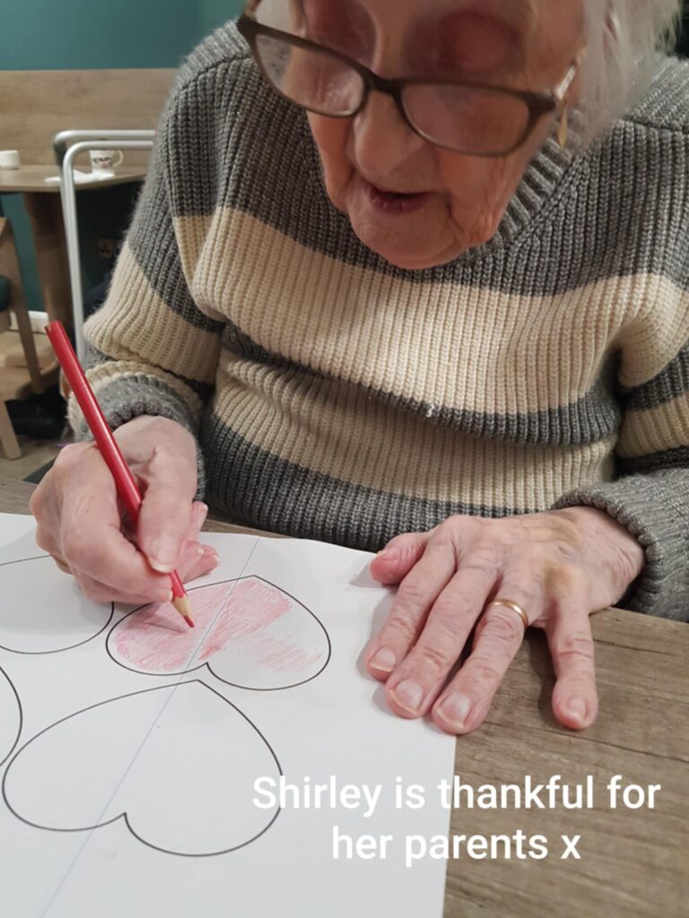 Today, our residents gathered together to create **Hearts of Kindness**, each one filled with a personal message about what they are grateful for.