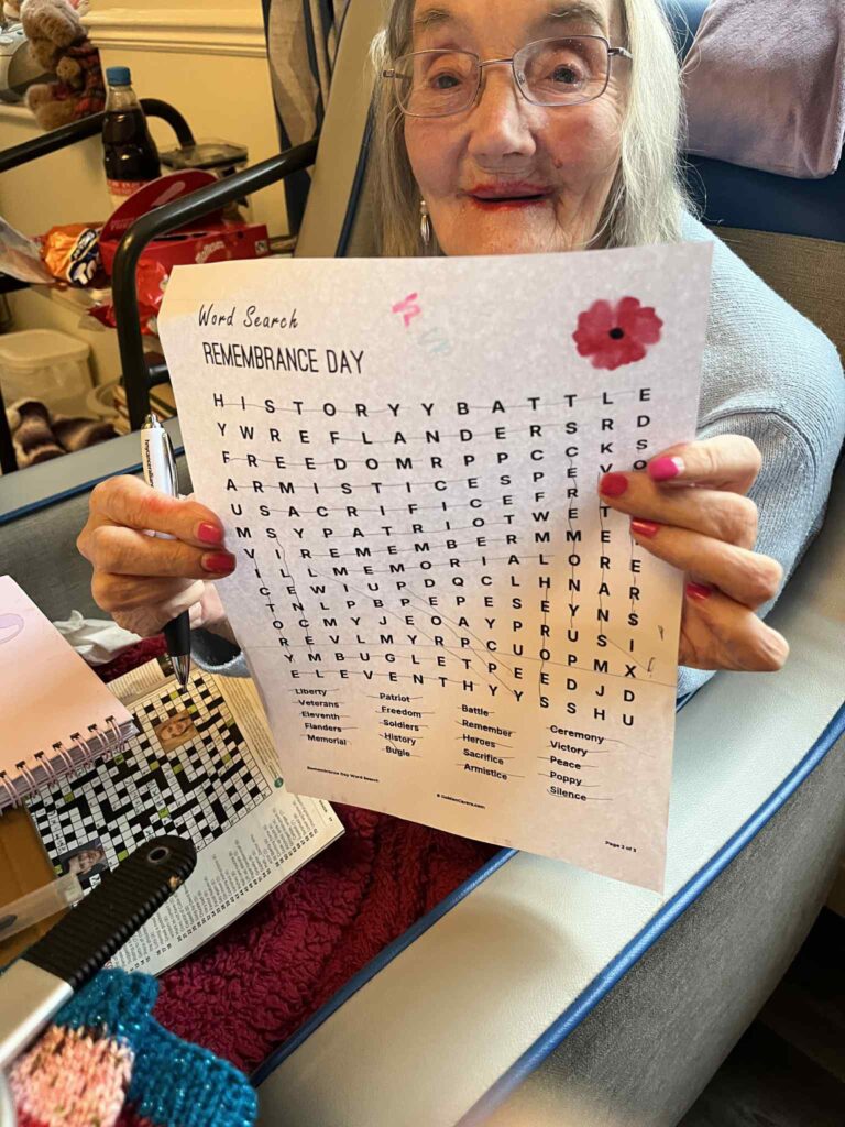 Today, our residents took part in a *Remembrance Day quiz* and spent time reminiscing and sharing memories of this special day. It was a lovely opportunity to reflect, honour, and remember together. 🌺