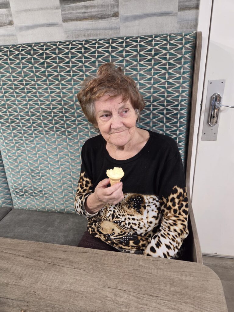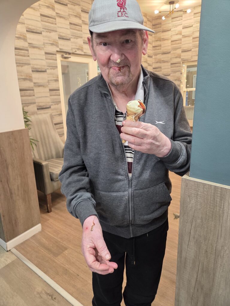 Today our residents enjoyed a cosy afternoon movie paired with a delicious ice cream treat.